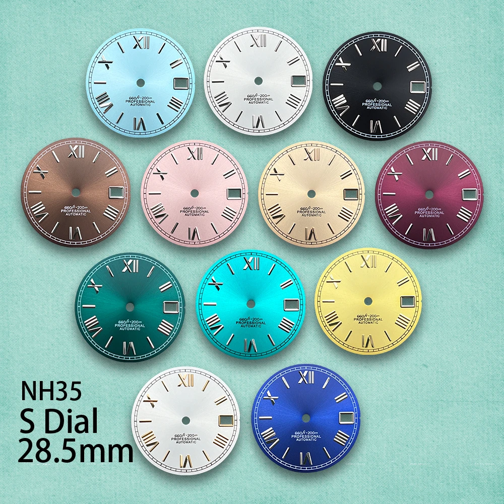 28.5mm S Logo Rome Dial Fit NH35/NH36/4R/7S Japanese Automatic Movement Sunray Dial Watch Modification Accessories