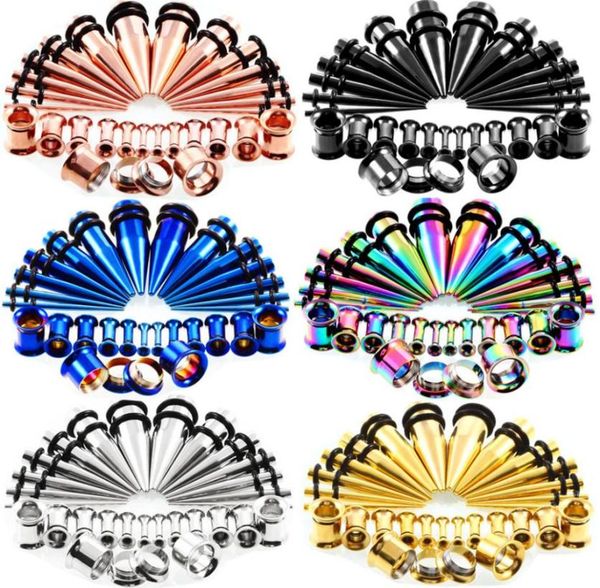 28pcsset ear stretching kit plugs and tapers gauges set stainless steel taper with plugs earring ear plug g80l3703943, Silver