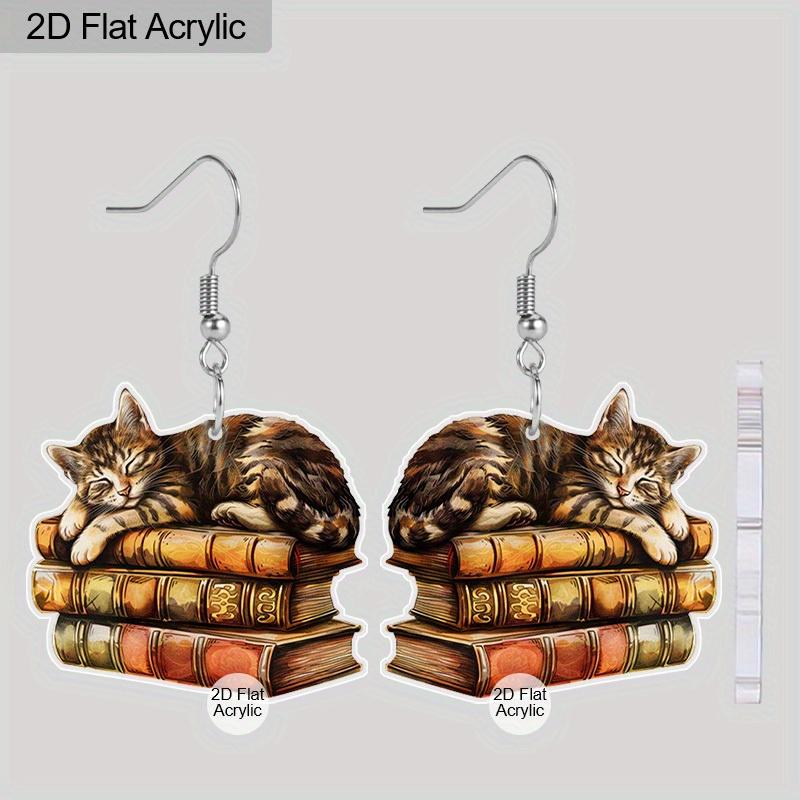 2D Плоские Акриловые Мультяшные Серьги с Кошачьим Узором из Книги Модная Бижутерия Подарок для Женщин Девочек