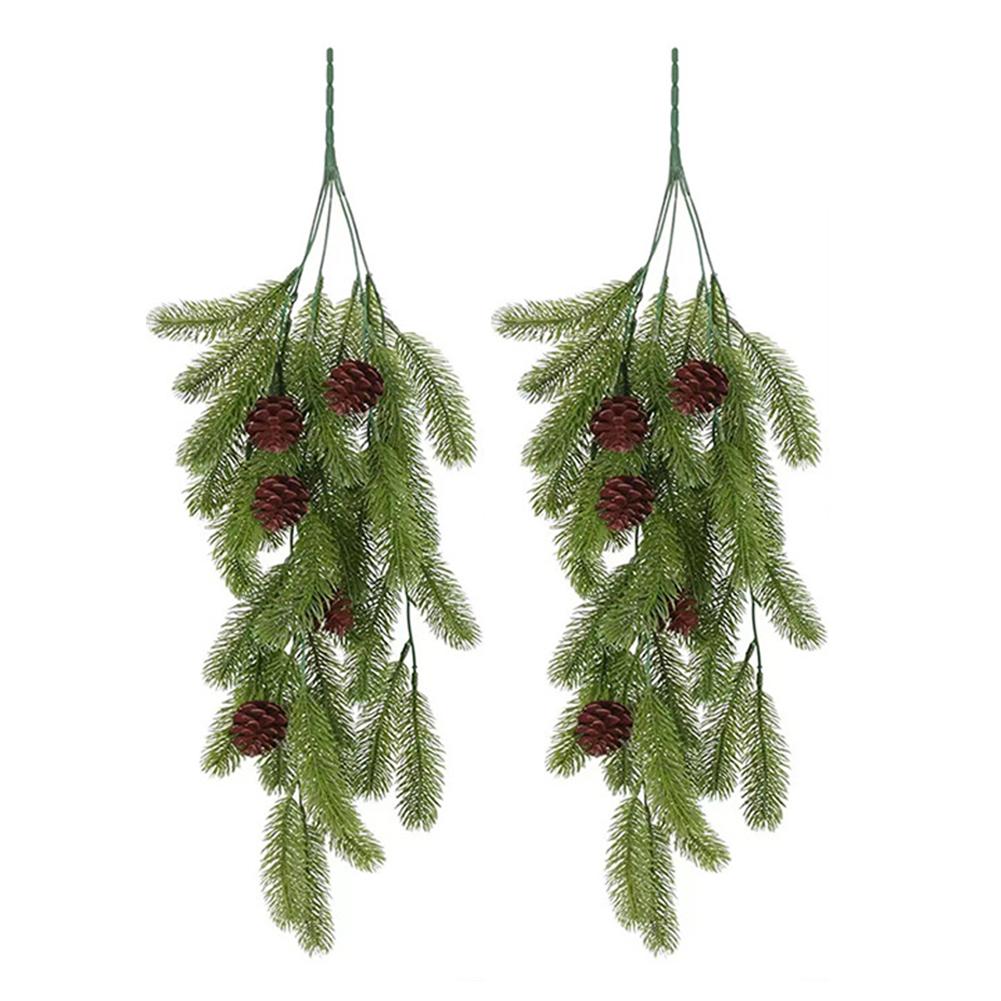 2PCS Pine Needles Pine Cones Vine Hanging Branches Plants Simulated 80cm Rattan Winter Cute Sim Z9T0 Green-2pcs