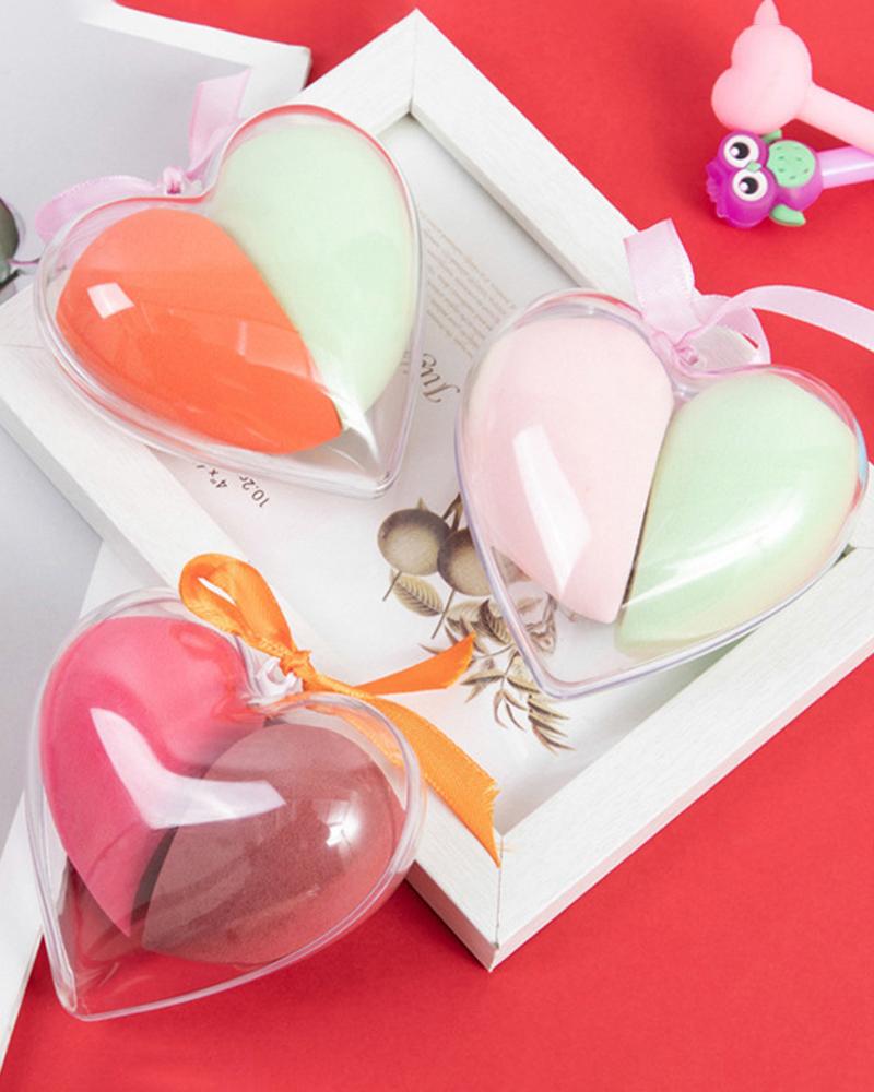 2PCS/Set Heart Pattern Flat-Ended Makeup Sponge(Colors Sent Randomly), Style1