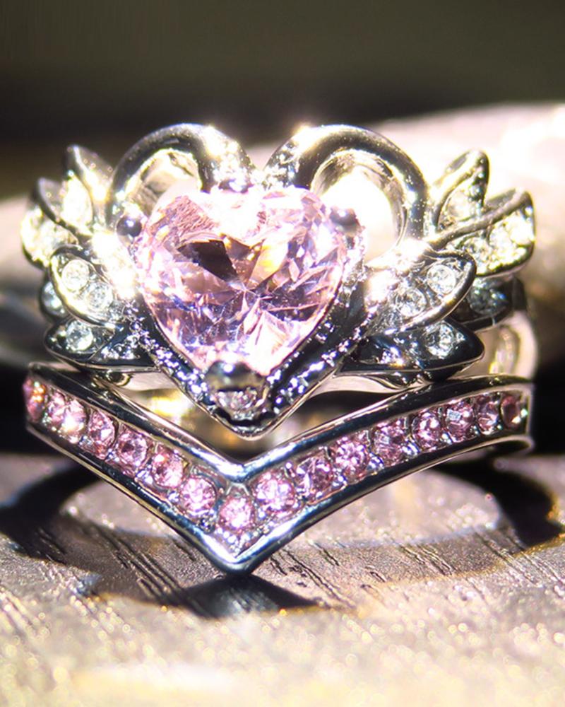 2PCS/Set Luxury Swan Shape Zircon Engagement Wedding Exquisite Jewelry Matching Couple Rings, Pink