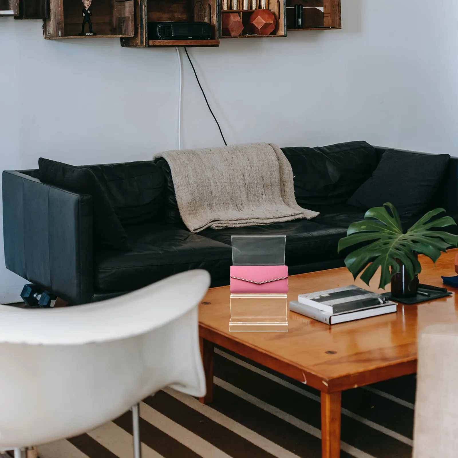 2Pcs Acrylic Wallet Display Stand Transparent Desktop Organizer Purse Holder Rack Multi-Functional Clear Storage Shelf for Home