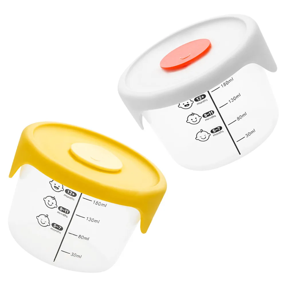2Pcs Baby Food Containers Food Grade Complementary Storage Box Leak Proof with Measurement Mark Microwave Safe PP
