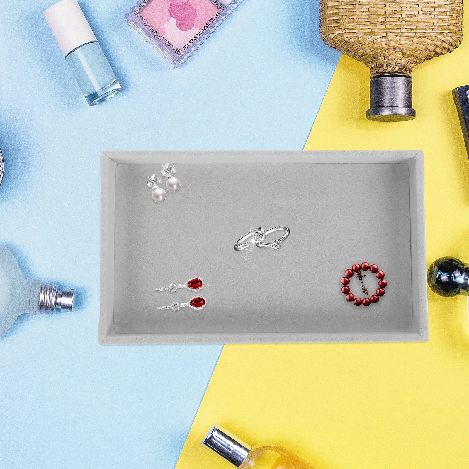 2Pcs Premium Jewelry Storage Tray Set Simple Stylish Desktop Display Tray for Earrings Necklaces Rings Fashionable Counter