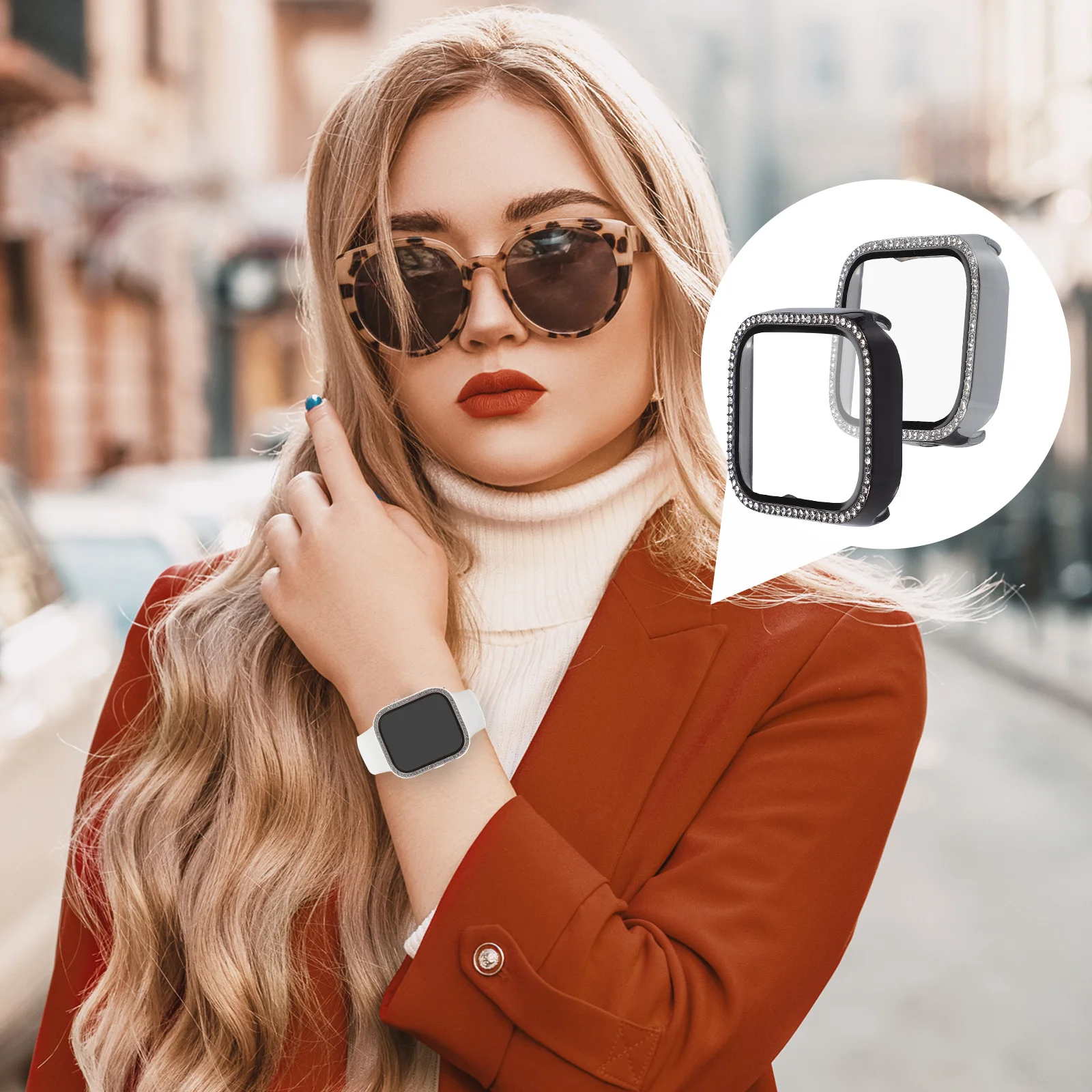 2Pcs Rhinestone Protective Case Smartwatch Screen Protector Scratch Proof Watch Cover Elegant Wristwatch Shell