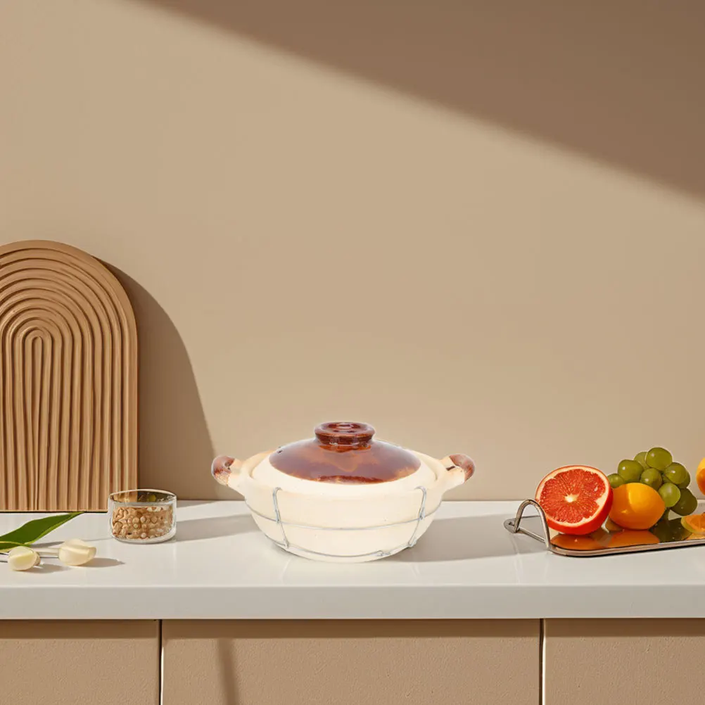 2Pcs Single Handle Clay Pot Traditional Casserole Rice Cooker Korean Stone Pot Chinese Cookware for Home Kitchen Cooking