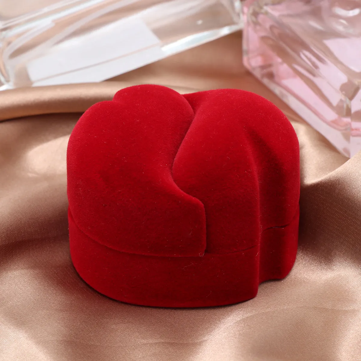 2Pcs Vibrant Red Double Ring Box Double Open Design for Couples Rings Storage Wedding Party Engagement Gift Compact Pocket