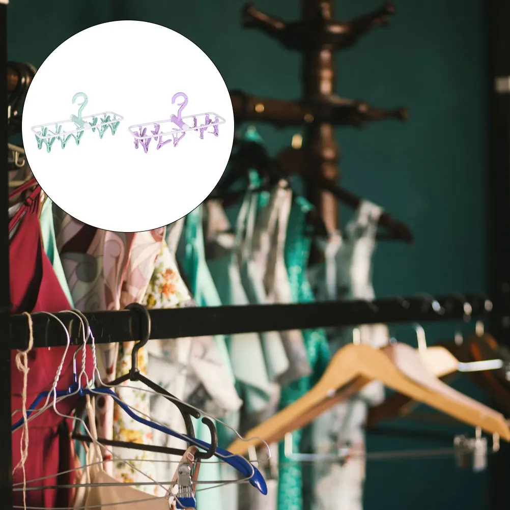 2Pcs Windproof Clothes Hanger Collapsible Drying Rack Plastic Multifunction Clips for Socks Hat Organizer Windproof Hanger