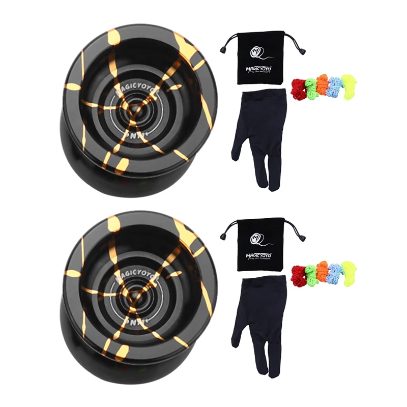 2X волшебный йо-йо N11 сплав алюминия Профессиональный Йо-Йо шар не реагирующий (черный золотой) мешок, перчатка 5 струн