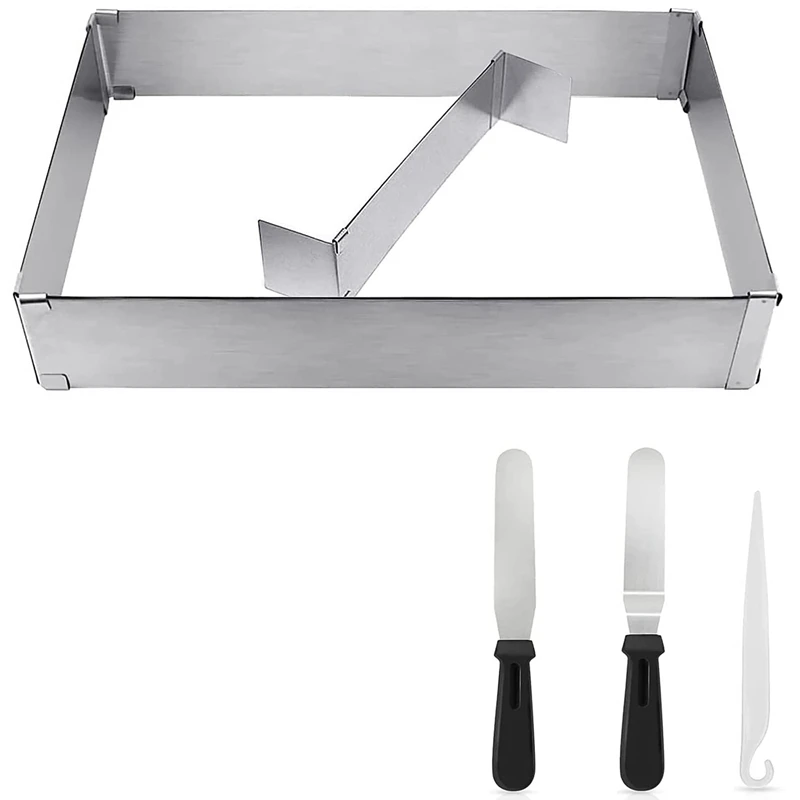 2X квадратная форма для выпечки, регулируемая рама для выпечки, прямоугольная Выдвижная рама для торта, рама для торта/пиццы, кольцо для торта