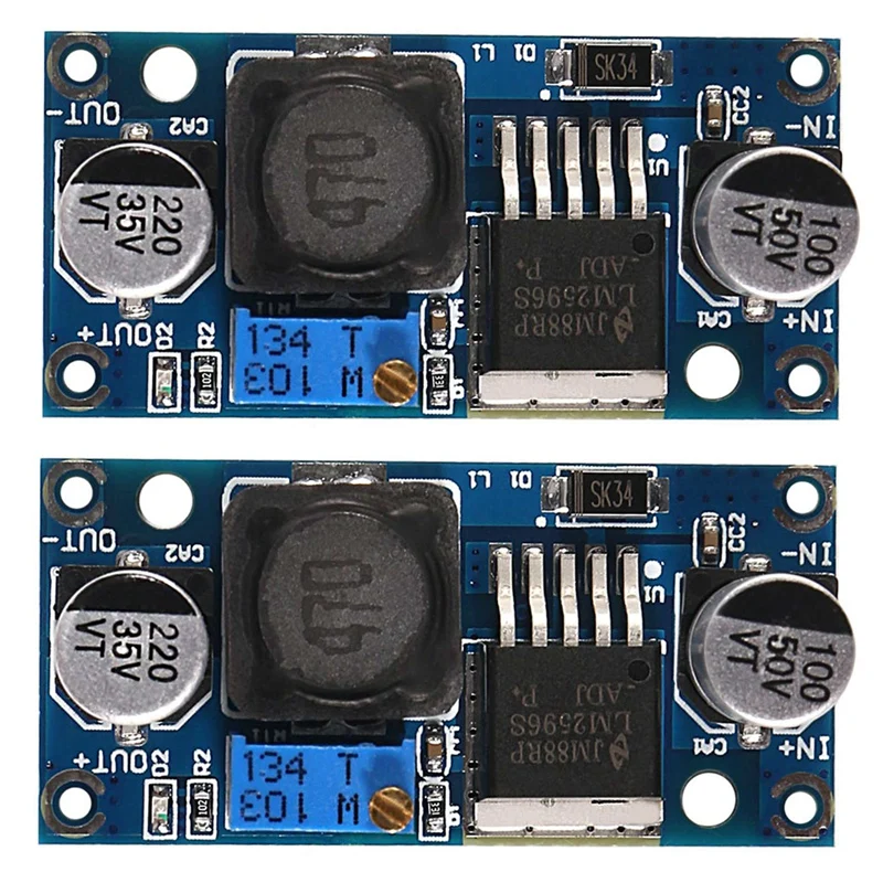 2X модуль преобразователя постоянного тока Lm2596-Регулируемый понижающий модуль питания постоянного тока понижающий преобразователь