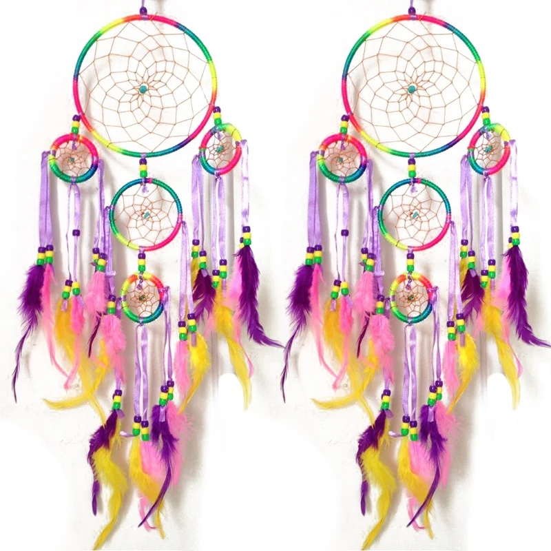 2X ручная работа, Ловец снов, традиционное искусственное украшение, красочное перо