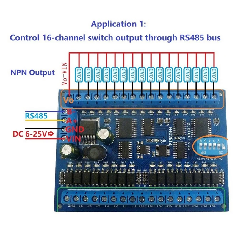 2X DC 12V 24V 16 вход 16 выход RS485 дистанционный переключатель PLC IO Плата расширения Modbus RTU модуль, только плата