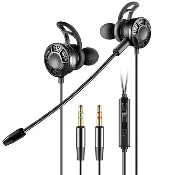 2m T2/1.2m T5 Dual 3.5mm Wired In-Ear Earphone Volume Control Headset Earbud with Mic for Computer Video Game Playing