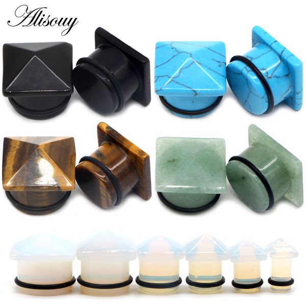 2pc ear expansion square-shaped stone fashion tunnel jewelry earrings piercing expander ear plug jewelry, Silver