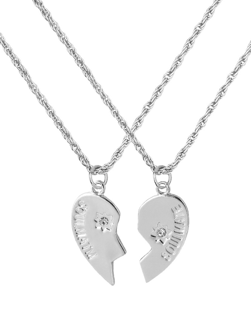 2pcs Heart Shaped Rhinestone Decor Chain Necklace, Silver