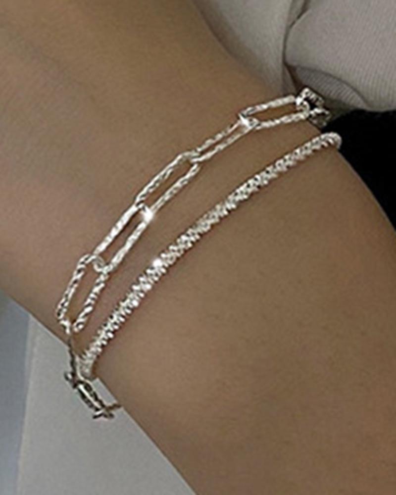 2pcs Rhinestone Decor Hollow Out Bracelets Set, Silver