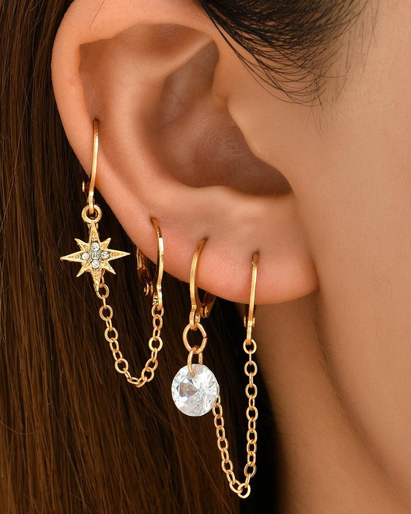 2pcs Rhinestone Star Pattern Chain Link Hoop Earrings, Gold