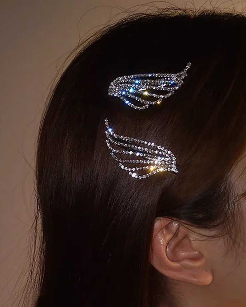 2pcs Rhinestone Wings Pattern Hair Clips, Silver