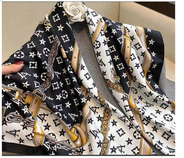 2style luxury brand classic simple letter flower design satin luxury square scarf outdoor shawl silk turban beach wrap fashion wom4166794, Blue;gray