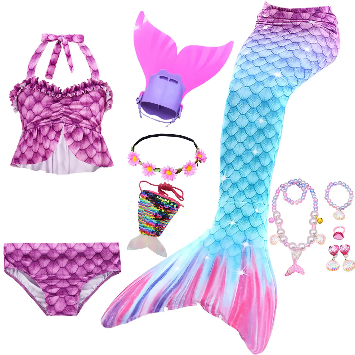 Cosplay Kids Fish Scale Mermaid Tail Dress And Lace Up Bikini Swimsuit For Girls Kids Photo Swimming Mermaid Costume