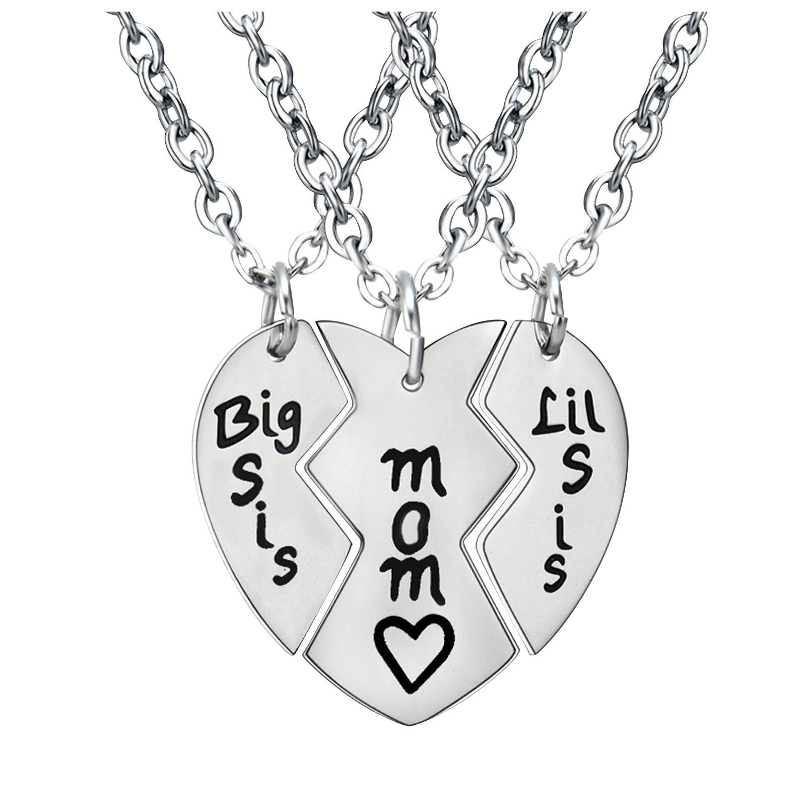 3шт ожерелье для матери и дочери комплект Big Sis Lil Sis мама ювелирные изделия подарок сердце ожерелье One Size
