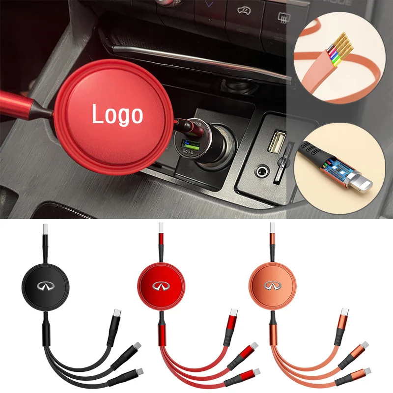3 А 3-в-1 Автомобильный USB-кабель для быстрой зарядки и передачи данных Телескопический для Infiniti Q50 QX30 FX35 QX60 QX80 Q30 Q70 G35 G37 JX35 автомобильные аксесс...