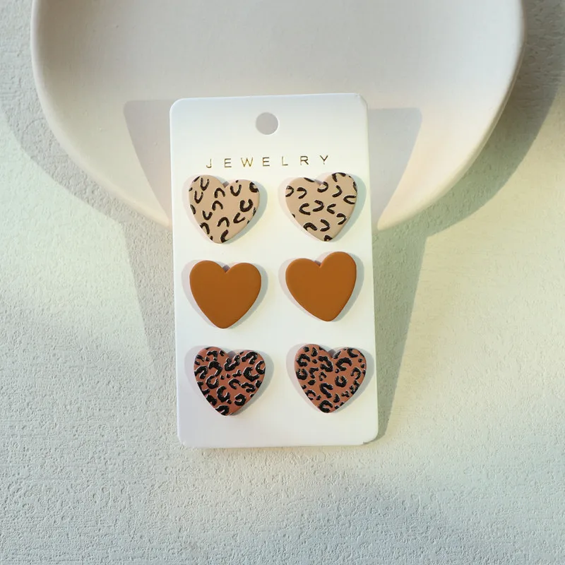 3 пары/компл. акриловые леопардовые серьги-гвоздики в форме сердца для женщин винтажные кофейные коричневые серьги Morandi корейские ювелирные изделия аксессуары Подарки