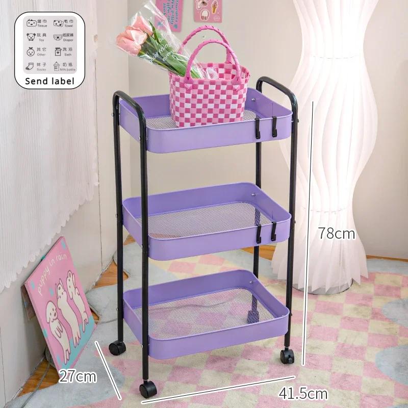3-слойная домашняя тележка контрастного цвета, полка для хранения, многослойная передвижная тележка, стойка для хранения косметики и закусок, мобильная полка для ванной комнаты фиолетовый