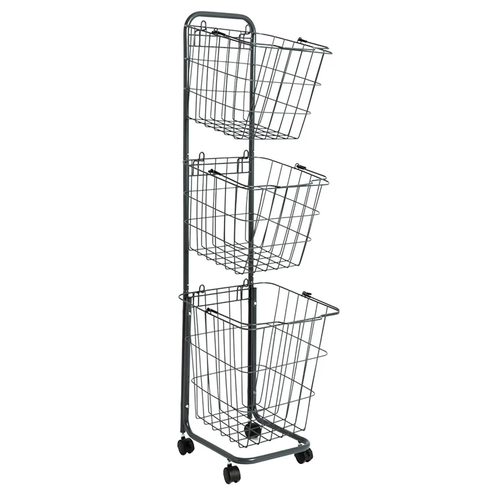 3-х уровневая тележка для белья, высокая корзина для белья, мусорное ведро с колесами, большая вместимость, металлический сортировщик, тележка для хранения для домашней прачечной, спортзала чёрный