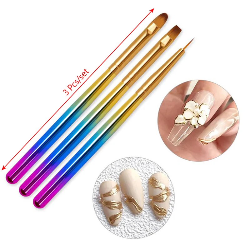 3 шт искусства ногтя щетка Радуга Цвет рисования резьба ручка для маникюра с украшением в виде кристаллов вкладыш нажмите с силой так акрило...