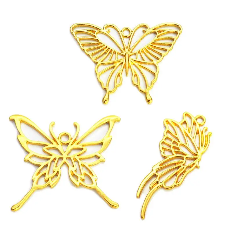 3 шт. Золотая бабочка подвеска на металлическом каркасе установка в открытую рамку УФ Смола DIY ювелирные изделия