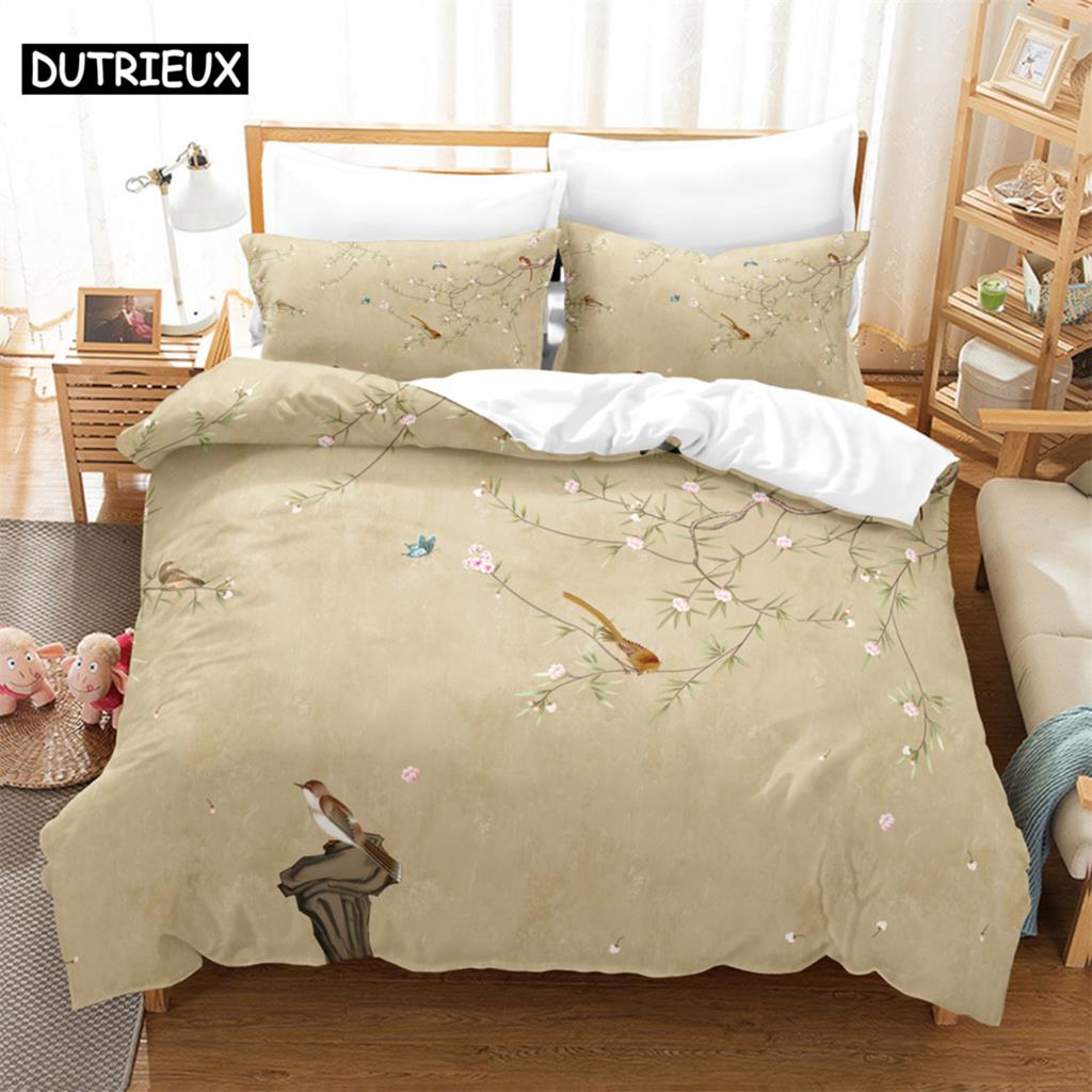 3 шт. Комплекты постельного белья с птицами и цветами Домашнее постельное белье Супер Кинг Пододеяльник Наволочка Одеяло Текстиль Комплект постельного белья EU single(135x200cm)&set