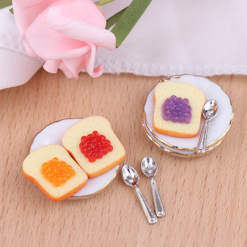 3 шт. / Компл. 1:12 кукольный домик миниатюрный тост маленькая тарелка ложка аксессуары для кукол