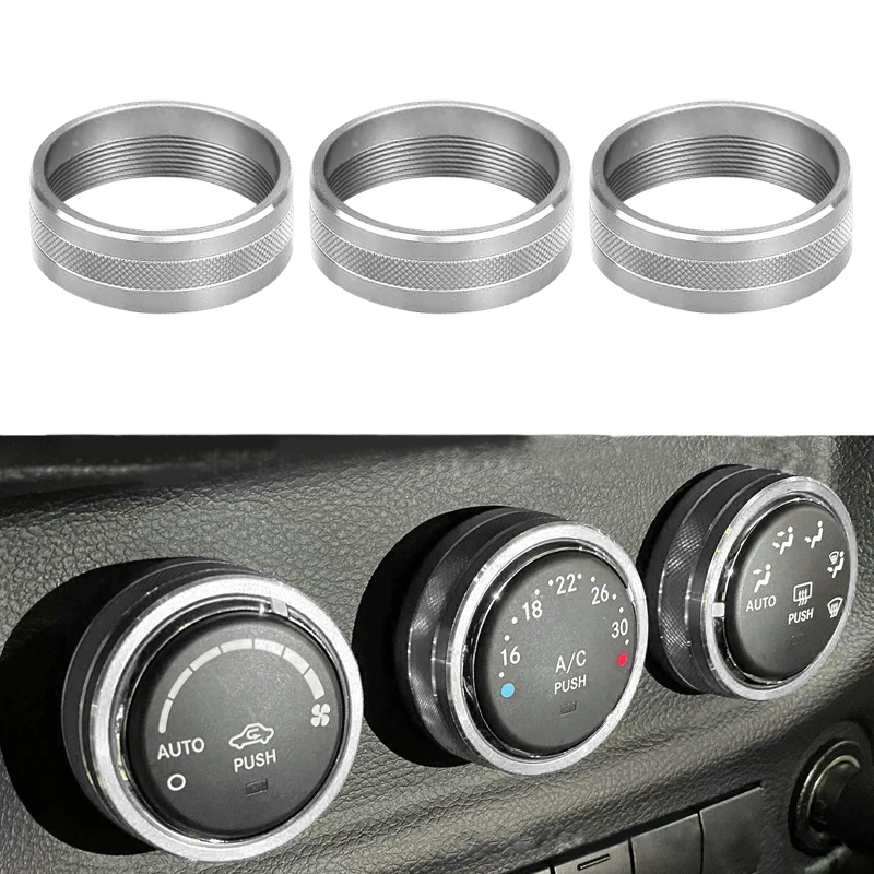 3 шт. Серебряная кнопка для кондиционера автомобиля, крышка кольца переключателя, декоративная отделка, подходит для Jeep Wrangler JK 2011 2012 2013 2014 2015 2016 2017