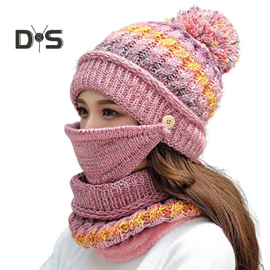 3 шт./комплект вязаная шапка шарф комплект утолщенная плюшевая подкладка меховой декоративный шарик шапка утеплитель для шеи съемная защита для лица комплект розовый