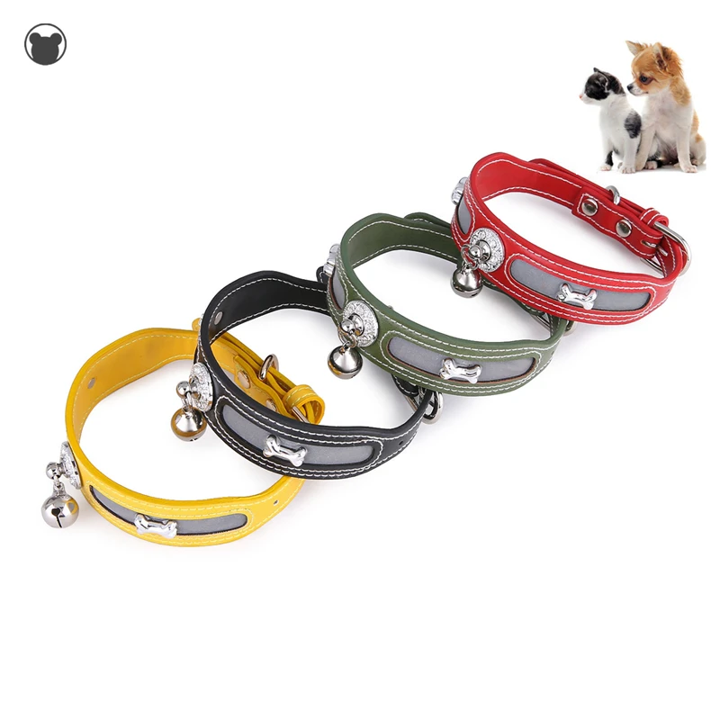 Ошейник для кошек и собак из искусственной кожи, отражающий ошейник с колокольчиком для домашних животных, черный ошейник с заклепками