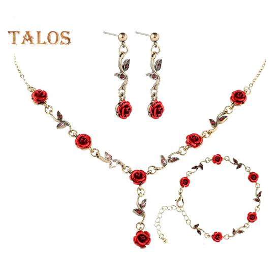 3 шт./комплект комплект украшений с красными розами, цветочная тема, романтика, винтажный французский стиль, подарок на День святого Валентина, День матери, серьги, регулируемое ожерелье со стразами 3pcs
