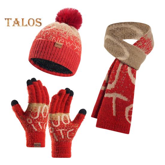 3 шт./комплект унисекс рождественская шапка шарф перчатки комплект толстый вязаный жаккард теплая шапка перчатки эластичная защита ушей зимний новый год подарок купол шейный платок вино красного