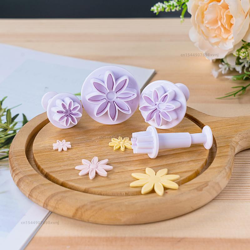 3 шт./набор мини-формы в форме цветка в форме сердца, пластиковый плунжер, инструменты для украшения торта, помадка, сахар, форма для печенья