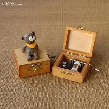 Nice Cute Little Animal Hand Wooden Music Box Music Box Sky City DIY Wedding Birthday Gifts Old Musical Notes Style For Kids