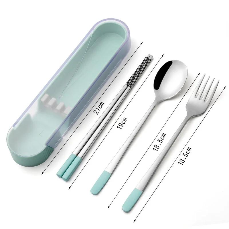 3 шт. 304 нержавеющая сталь портативные столовые приборы ложка вилка палочки для еды студенческие дорожные корейский стиль портативный набор столовых приборов кухонные принадлежности синий