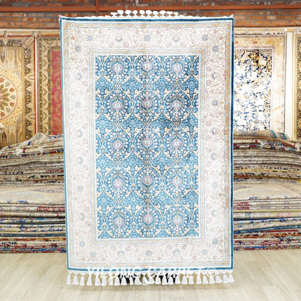 3,5 'x 5,2' Античный Восточный темно-синий ковер, изысканный Шелковый коврик ручной работы Hereke (YL01A)