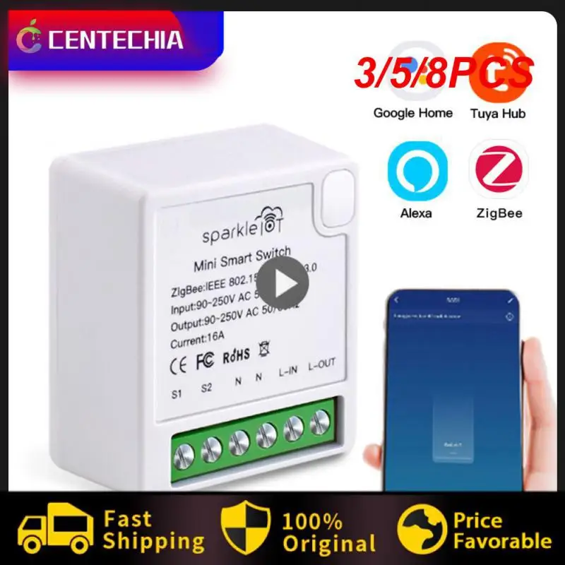 3/5/8PCS Diy Universal Breaker Module Timing 16a Smart Switch App Control Mini Supports 2 Way Works With Alexa Google Home Tuya
