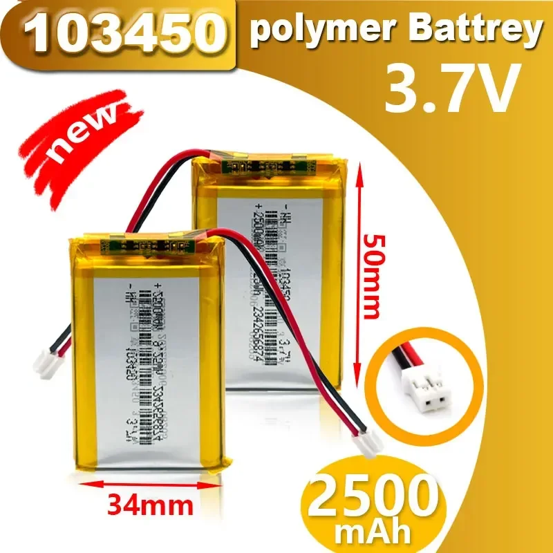 3,7 в 103450 полимерный литиевый аккумулятор, 2500 мАч перезаряжаемый 103450 полимерный аккумулятор для MP5, игрушек, камер, GPS, Bluetooth, динамиков