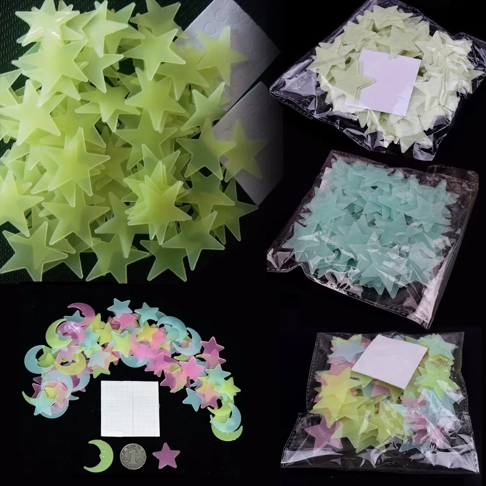 3,8 см светящаяся паста со звездами 100 шт. SMD светодиодсветодиодный флуоресцентные светящиеся трехмерные наклейки на стену