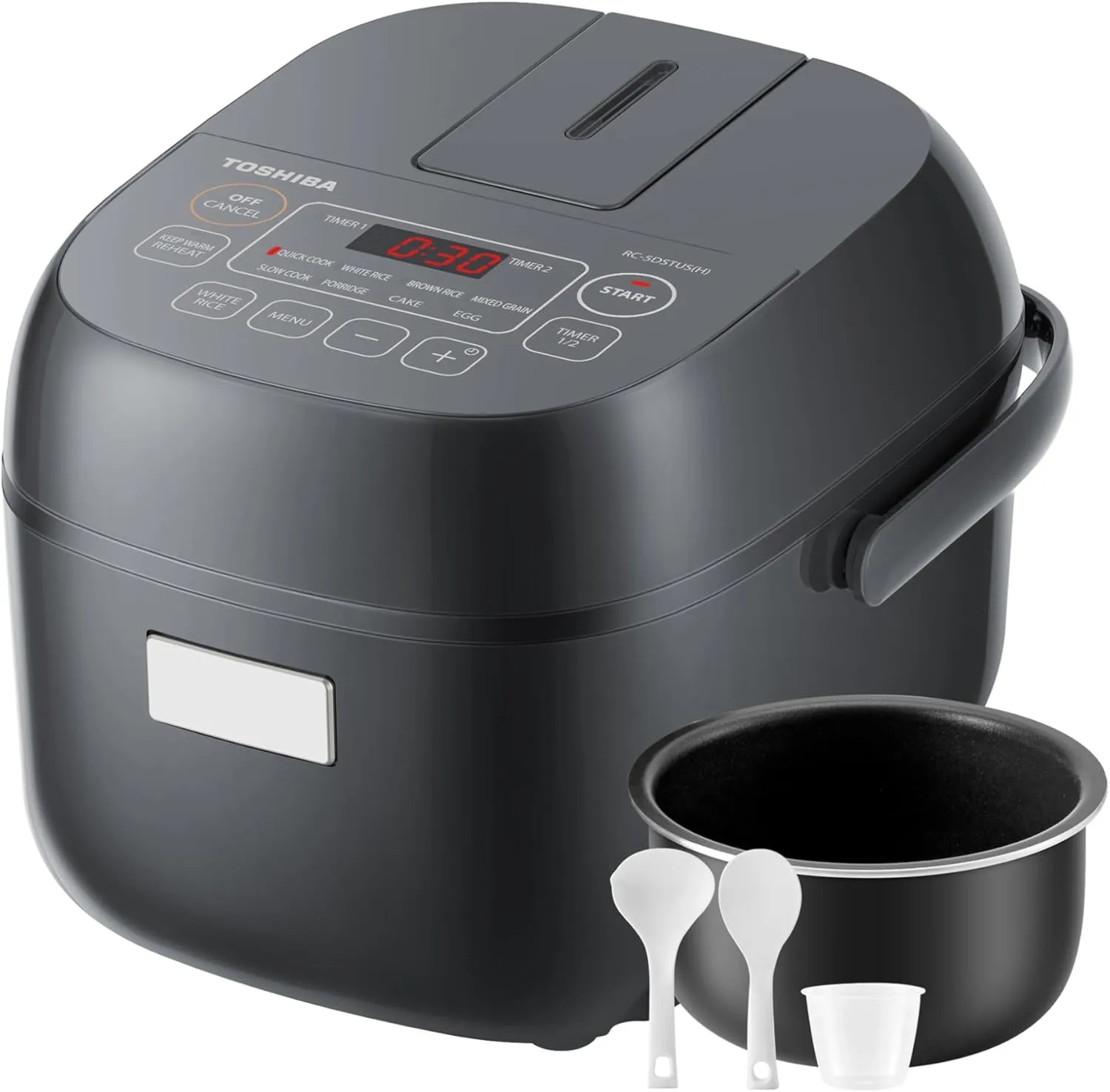 3-Cup Rice Cooker with LCD Display & 8 Cooking Functions, Grey
