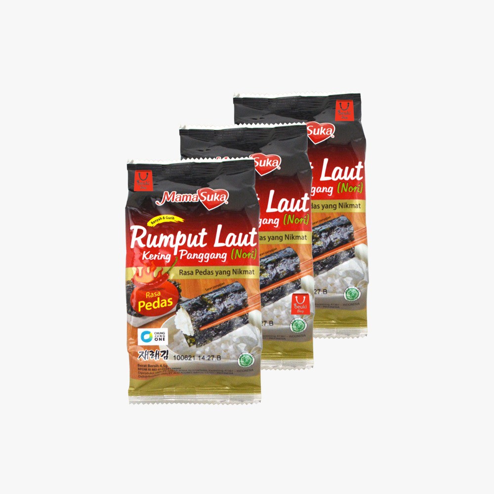 3 PCS Mama Suka Rumput Laut Pedas Seaweed Nori Kering Rasa Pedas - 3pcs x 4.5gr