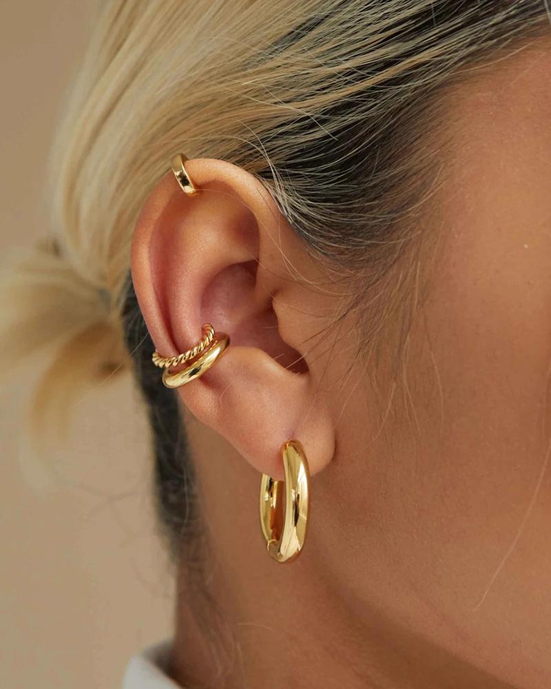 3 Pair Geometric Pattern Hoop Earrings & Ear Climber Set, Gold